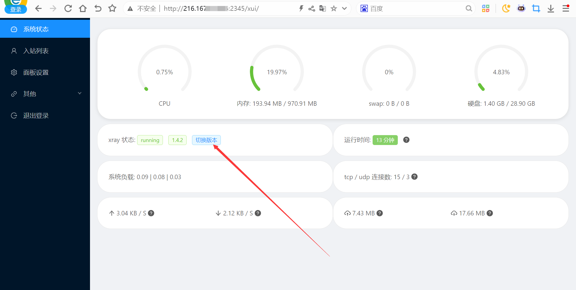 4.登陆面板之后,可以切换一下最新版本